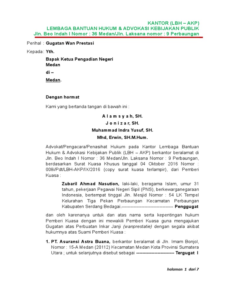 Baik anda selaku terdakwa ataupun selaku pendakwa, anda tetap memiliki hal untuk meminta pendampingan hukum dari advokat. Contoh surat kuasa pendampingan hukum. Surat kuasa merupakan surat resmi berkekuatan hukum yang mengikat dan dapat dipertanggungjawabkan. Contoh gugatan di pengadilan negeri Surat kuasa di pengadilan negeri.